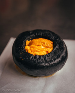 Working my way around the market is a metaphor for Tokyo itself — incredible variety, beauty, and too much to take in on one visit. Affordable high-quality unagi (eel) fire-grilled to ideal juiciness. A squid ink bun stuffed to the brim with unctuous sea urchin — the saturation of its vibrant yellow color dialed up. For many, sea urchin (or uni) is an acquired taste. It is unapologetically of the sea. However, the buttery richness delivers coats every corner of the taste buds.